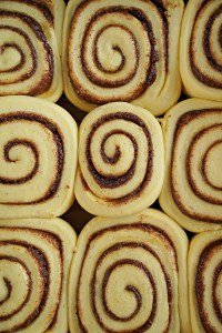 - Once the dough has risen, roll the dough out on a well-floured surface and into an 18×12 inch rectangle. Spread the filling mixture over the dough. Start rolling the dough tightly from the short end.