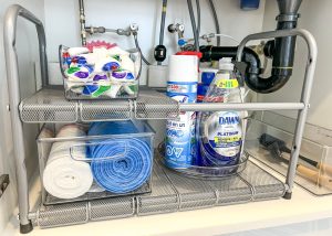 If there’s one area that has clients constantly asking for help, it’s the awkward space under the kitchen sink. More often than not, ample space is available, but without organizing product it almost feels useless.