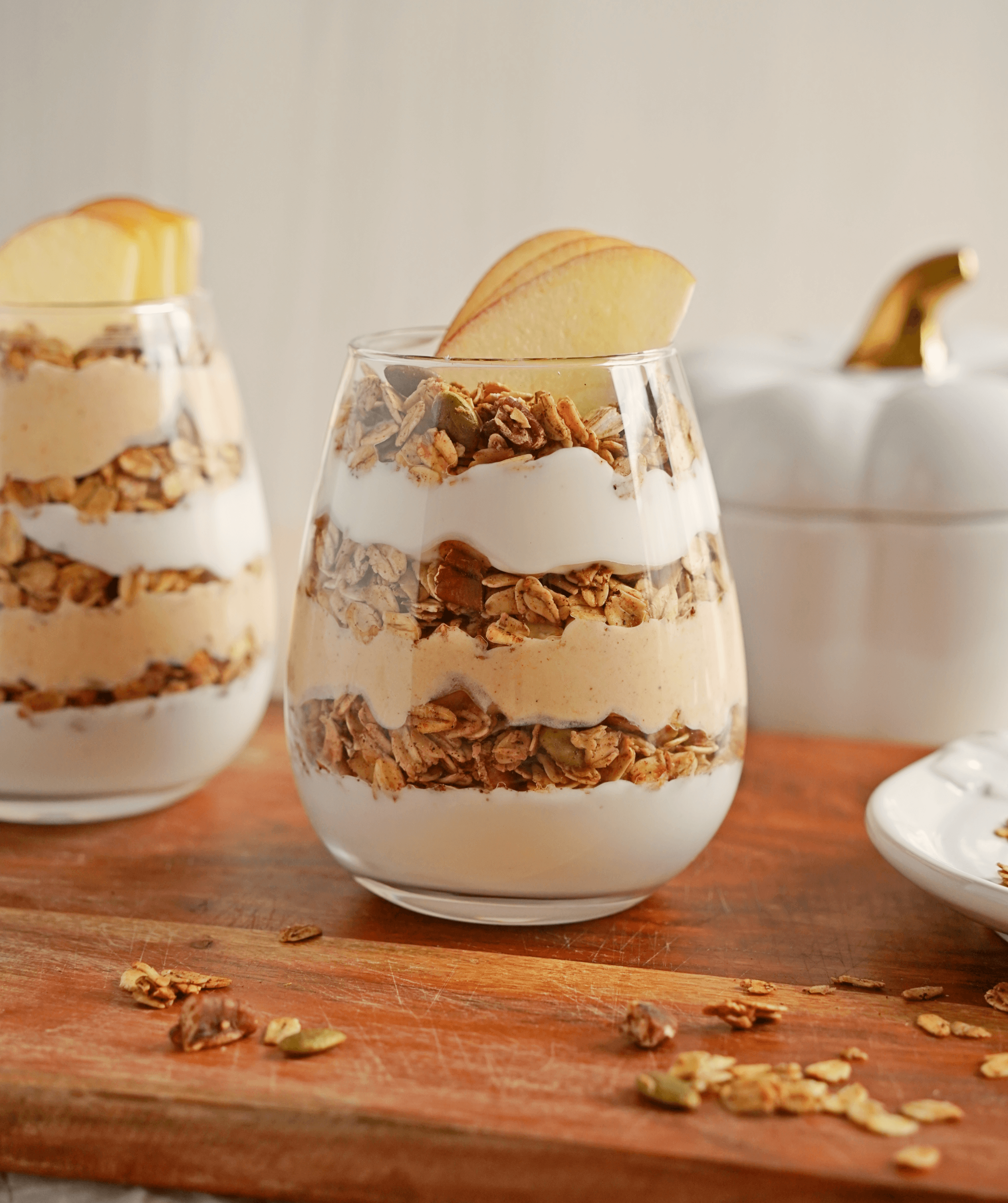 Not every weekend calls for something heavy from the oven—sometimes it’s the lighter, layered recipes that feel just right. Something with flavor, crunch, and just enough indulgence to make the morning special. Cue the parfait: warm spiced granola, rich Greek yogurt, and a swirl of pumpkin cream all coming together in a glass that looks as pretty as it tastes. Created in partnership with Christine Kozovski, whose seasonal recipes always bring a touch of inspiration, this one is a fun way to get the kids involved—have them stir the oats before baking, sprinkle granola between yogurt layers, and top each parfait with fresh apple slices. It’s make-ahead friendly too, so you can prep the granola the night before and enjoy a stress-free, cozy brunch.