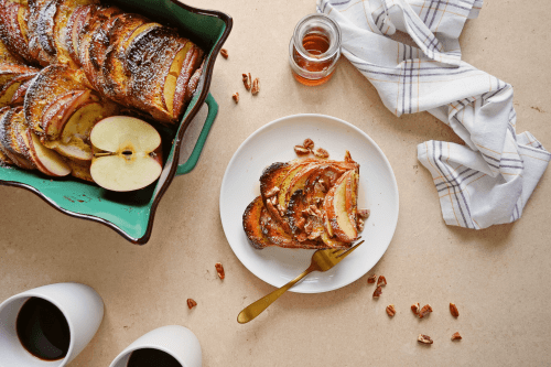 Weekend mornings deserve a dish that feels special without keeping you in the kitchen all day. Think of this as brunch made beautiful without the fuss: a buttery puff pastry base topped with garlicky mushrooms, tender spinach, and gooey Gruyere, then baked with golden eggs cracked right on top. It looks impressive, but it’s delightfully simple—and the best part is serving it family-style. Place it at the center of the table, let everyone slice off a square, and enjoy with fresh microgreens. Created in partnership with our friend Christine Kozovski, who always brings fresh inspiration to the table, this slab pie is the kind of dish that feels restaurant-worthy but takes less than an hour, leaving you more time to sip coffee and chat.