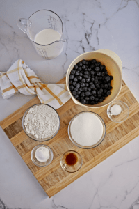 2. In a medium bowl, mix together the blueberries, 2 tbsp of sugar, 2 tbsp lemon juice and 1 tbsp lemon zest. Set aside.